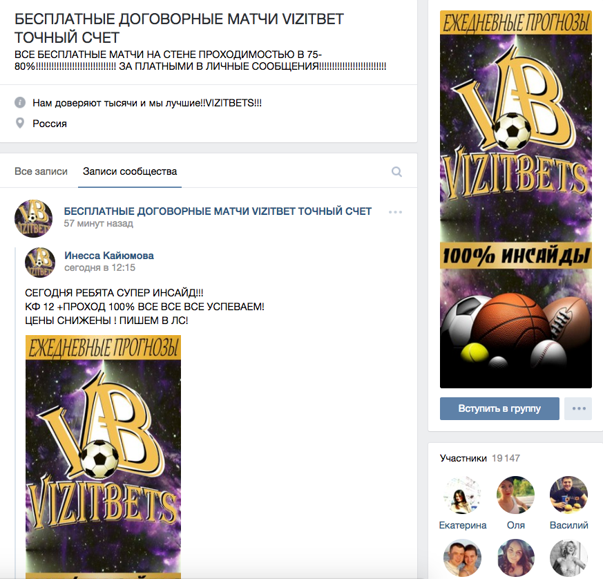 Наиболее часто можно встретить человека на форуме и в социальной сети. Он будет предлагать приобрести гарантированный результат, какого-либо спортивного события. Многие из подобных предложений бывают бесплатными или она производится только после прохождения ставки.